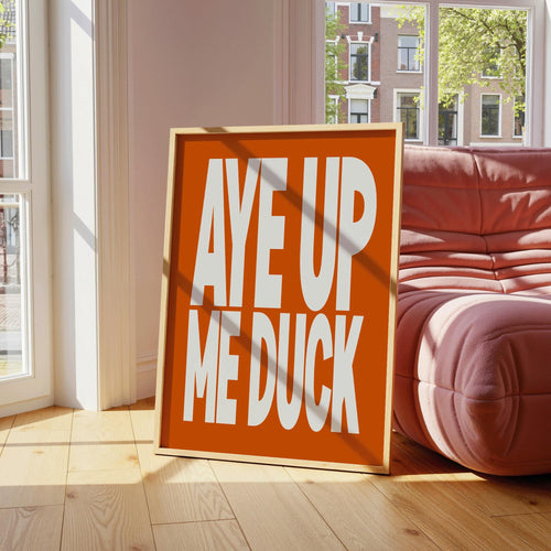 Aye Up Me Duck Print | Funny Northern British Slang, Bold Typography